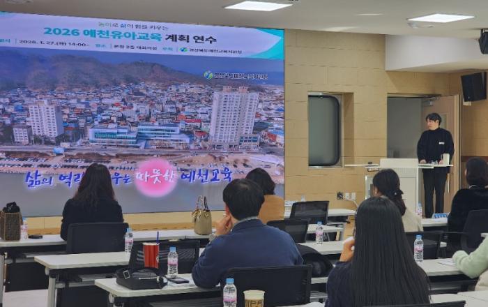 예천교육지원청(교육장 김성중)은 1월 27일(화) 예천교육지원청 대회의실에서 관내 유치원 원감 및 교육과정 담당 교사 17명이 참석한 가운데 2026학년도 예천유아교육 계획 설명회를 개최하였다.예천교육지원청은 놀이로 배우는 즐거운 교실, 미래를 여는 행복 교단, 모두가