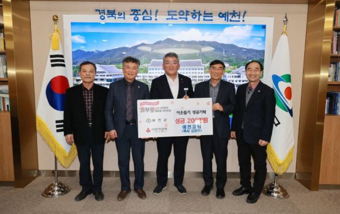 예천군(군수 김학동)이『희망2025 나눔캠페인』을 2025년 1월 31일까지 추진하는 가운데, 2024년 마지막 날까지도 따뜻한 손길이 끊이지 않아 훈훈한 미담을 남기고 있다. 31일 오후, 예천교회(목사 김영수)에서 예천군청을 방문해 200만원을 기탁했다. 또한, ▲
