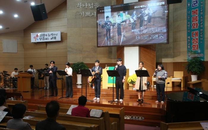 [채석일 기자]예천군기독교연합회(회장 김한식 목사.풍성한교회)가 주최한 2025‘예천군 복음화 대성회가 관내 기독교 신자 100여명이 참석한 가운데 10일 저녁7시 예천교회에서 거행됐다.오는 12일까지 3일간 열리는 이날 예배는 예천군기독교연합회장 김한식 목사(풍성한교