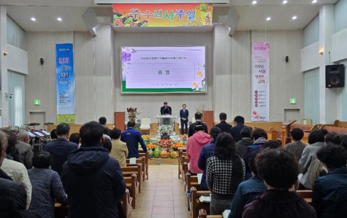 [채석일 기자]예천군기독신우회(회장 황칠환 장로.예천교회)가 10일 저녁7시 기독신우회 황칠환 회장을 비롯한 20여명이 회원이 참석한 가운데 신도청 늘푸른하이교회(김목원 목사)에서 2025년도 마지막 정기 월례회, 순회예배를 드렸다.이날 지역교회 순회예배로 열린 월례회
