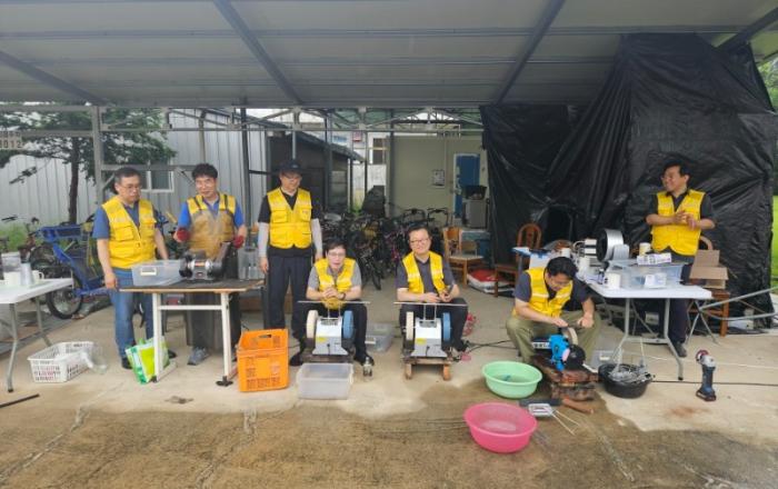 [채석일 기자]기독교대한성결교회 경북서지방회 문경감찰회 ‘The행복봉사단’ 7인의 목회자들이 이번엔 예천을 찾았다.행복봉사단(단장 계춘경 목사.영신교회)은 5일 오후2시 예천읍 동본1리 마을회관에서 주민들의 부엌칼, 낫 등을 갈아주는 찾아가는 칼갈이 봉사를 실시했다고