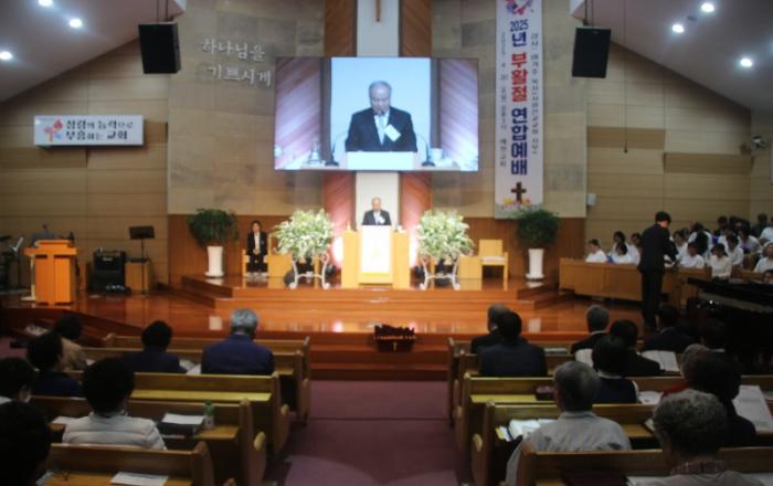 [채석일 기자]“부활의 기쁨을 온 누리에~”' 2025년 예천군기독연합회(회장 김한식 목사.풍성한교회) 주최 부활절 연합예배가 20일 오후 3시 예천교회에서 개최되어 700여명의 성도들이 참석하여 예수부활을 기뻐하는 부활절 연합예배를 가졌다.이날 부활절 연합예배에는 김