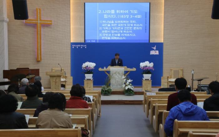 [채석일 기자]기독교대한성결교회 경북서지방회 문경감찰회(감찰장 김광진목사.가은은혜교회) 11개 교회가 4월 25일 저녁 7시 30분,점촌충현교회(문은석 목사)에서 2025년 제2차 ‘연합금요기도회’를 열었다.이날 기도회는 문경,예천지역 11개교회 목회자와 성도들 50여
