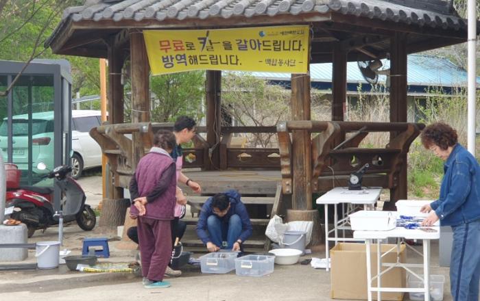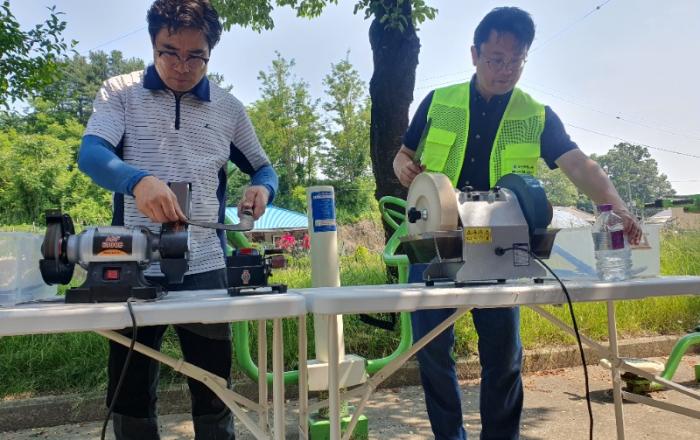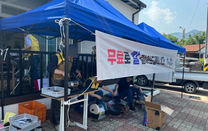 [채석일 기자]예천백합교회 백합봉사단(김경환 목사)은 지난 1일 오후2시 예천읍 우계리(이장 이석호) 광대원 경로당을 찾아 무료 칼갈이 봉사활동을 전개했다.이날 봉사활동에서는 예천백합교회 봉사단 과 가은은혜교회 은혜봉사단 회원 10여 명이 참여한 가운데 칼, 가위, 낫