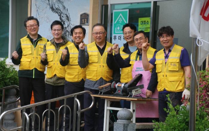 [채석일 기자]기독교대한성결교회 경북서지방회(회장 이성복 목사.점촌교회) 문경감찰회(회장 김광진 목사.가은은혜교회) 7개 교회가 하나로 뭉쳤다.문경감찰회는 ‘The 행복봉사단’을 만들고 감찰회 소속 영신교회 계춘경 목사를 단장으로 하는 ‘찾아가는 칼갈이 무료 봉사활동’