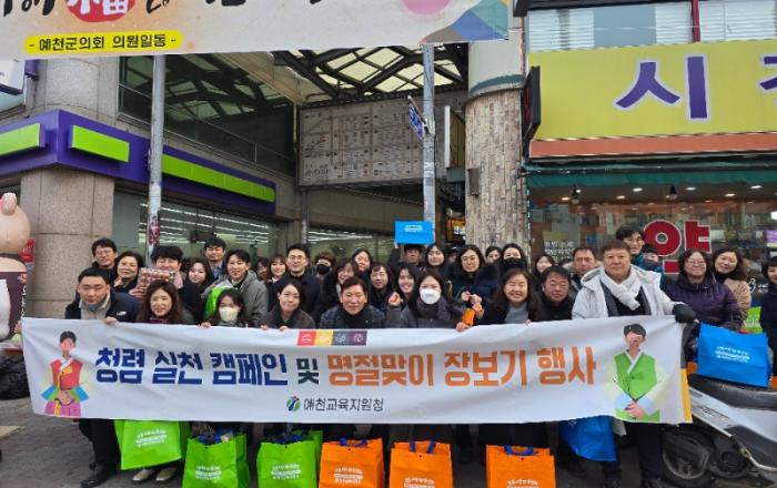 예천교육지원청(교육장 이창희)과 예천도서관 소속 직원 50여명은 22일 민족 고유의 명절인 설을 앞두고 예천읍 상설시장에서 전통시장 장보기를 실시했다. 이번 행사는 청렴 예천교육을 홍보하고, 지역 생산 물품 등을 구매하여 위축된 소비심리에 활력을 불어넣는데 동참하고자