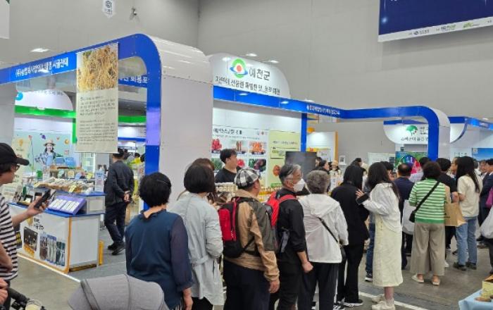 예천군(군수 김학동)은 지난 5일부터 7일까지 대구 EXCO에서 열린 ‘2025 경북농식품대전’에 참가해 지역 농식품의 우수성과 경쟁력을 널리 알리고, 수출 및 유통 확대를 위한 다양한 상담을 진행했다. 이번 행사에는 예천군 6개 농식품 업체가 참여해 ▲구기