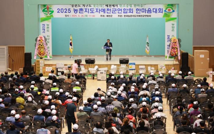 한국농촌지도자예천군연합회(회장 안희용)는 26일, 예천군문화체육센터에서 2025 농촌지도자예천군연합회 한마음대회를 개최했다. 이날 행사에는 김학동 예천군수, 강영구 예천군의회의장을 비롯해 각 농업 관련 기관장들과 농업인 단체장, 농촌지도자 회원 등 700여 명이 참석