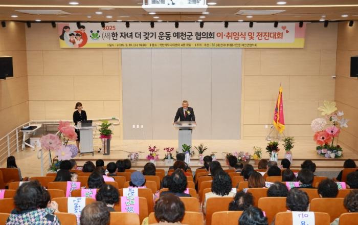 한자녀더갖기운동 예천군협의회(회장 이남순)는 19일, 복합커뮤니티센터 4층 다목적 강당에서 ‘2025년 한자녀더갖기운동 예천군협의회 이·취임식 및 전진대회’를 개최했다. 이날 행사는 저출산 위기 극복과 가족 친화적 문화 확산을 위해 힘써온 회원에 대한 표창 수여와 한자