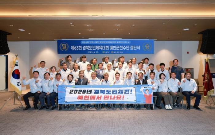 예천군(군수 김학동)과 예천군체육회(회장 이철우)는 23일 오후 6시 30분, 경북도청 신도시 청하에서 제63회 경북도민체육대회 선수단 결단식을 갖고 필승의 각오를 다졌다. 이날 결단식은 김학동 군수, 강영구 군의회 의장, 이철우 체육회장과 선수 및 임원 8