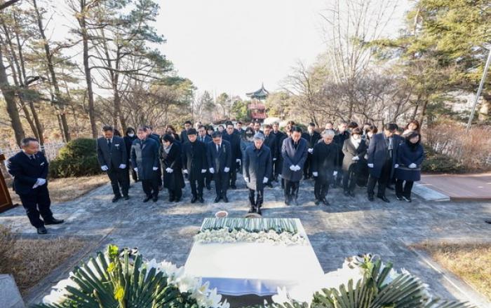 김학동 예천군수는 2025년 을사년 새해를 맞아 1일 남산충혼탑에서 신년 참배를 시작으로 새해 일정을 시작했다.이날 참배에는 김학동 예천군수, 강영구 예천군의회 의장, 군의원, 국실과소장 및 보훈단체장 등 60여 명이 참석한 가운데 헌화, 분향, 묵념 순으로 경건하게