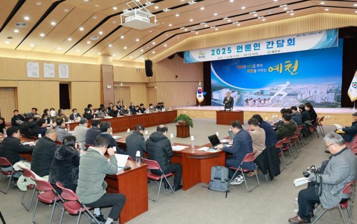 예천군(군수 김학동)은 을사년 새해를 맞아 군정 성과와 올해 군정 운영 방향을 공유하기 위해 13일 오전 11시, 군청 대회의실에서 언론인 간담회를 개최했다. 간담회는 김학동 군수와 관계공무원, 언론인 50여 명이 참석한 가운데 2025년 군정 운영방향 및 주요사업,