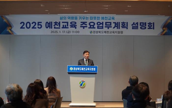 예천교육지원청(교육장 이창희)은 1월 17일(금) 오전 11시 예천군의 교(원)장, 학교운영위원장, 학부모회장 등 90여 명이 참석한 가운데 ‘2025 예천교육 설명회’를 개최하였다. 이번 행사는 개회식, 내빈 소개, 직원 소개, 예천교육 안내, 간담회 순으로 진행되었