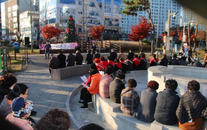 [채석일 기자]예천군기독교연합회(회장 오성희 목사.금곡교회) 주관으로 24일 오후 4시 경북도청신도시 걷고싶은거리에서 지역 목회자,성도들과 김학동 예천군수,신향순 ,강경탁,이동화 군의원등 100여명이 참석한 가운데 '2024년 성탄트리 점등식'이 개최됐다.이날 점등식은