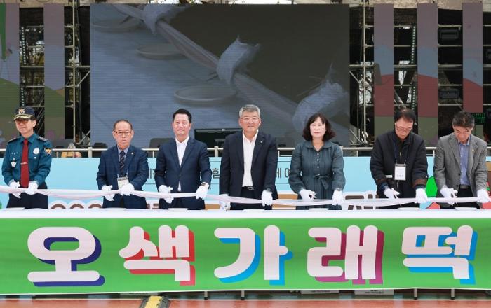 2일 ‘2024 예천농산물축제’에서 펼쳐진 ‘오색가래떡 퍼포먼스’가 관람객들의 눈길을 사로잡았다. 이번 행사는 친환경 농산물로 대표되는 예천에서 생산된 우수한 쌀로 군민화합과 장수를 기원하고 쌀 소비를 촉진하기 위해 마련됐다. 오색가래떡은 ‘화합‧발전‧건승