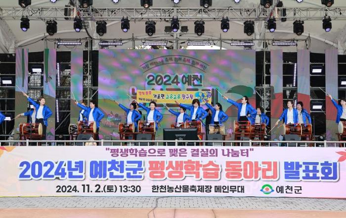 예천군(군수 김학동)은 2일 2024 예천농산물축제가 열린 한천체육공원 메인무대에서 전 군민과 함께하는 ‘평생학습 한마당 잔치’를 성황리 개최했다. 이번 행사는 예천군이 올해 신규 평생학습도시로 지정된 것을 기념하며 김무진 작가의 캘리그라피 퍼포먼스가 펼쳐