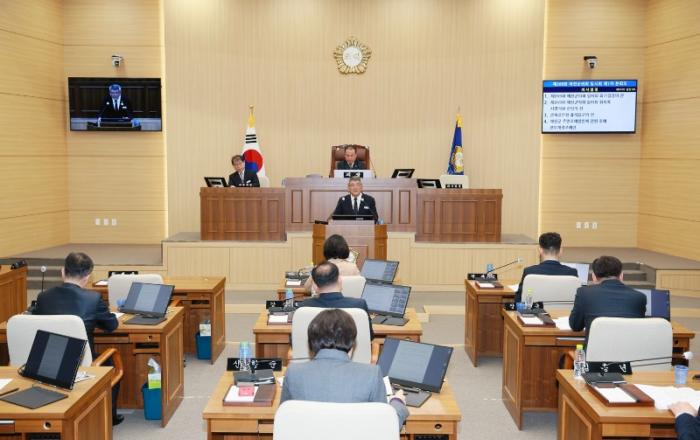예천군의회(의장 최병욱)는 6일 오전 11시 의회 본회의장에서 제269회 예천군의회 임시회를 개회하고 13일까지 8일간의 의사일정에 들어갔다. 이날 제1차 본회의에서는 「예천군 주민조례발안에 관한 조례 전부개정조례안」(이동화의원 외 1명) 「예천군의회 의