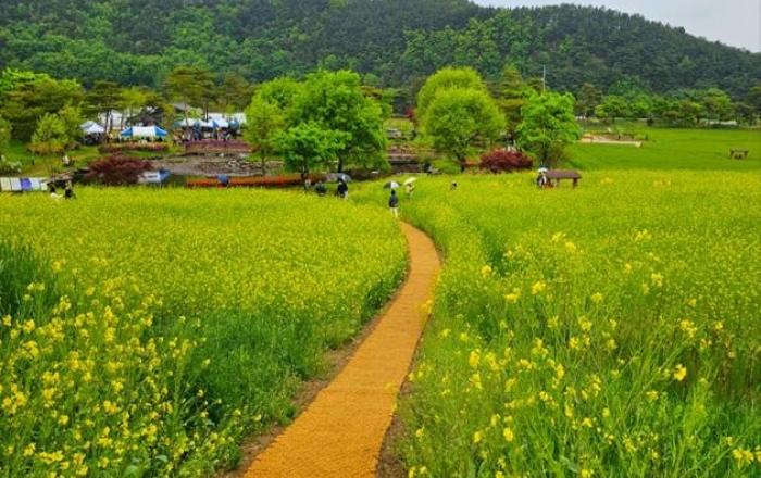 꽃은 한 송이만 봐도 예쁘고, 다발로 보면 더 이쁘고, 밭으로 보면 훨씬 더 예쁘다. 예천군에 노란 유채꽃과 초록의 청보리가 밭으로 피었다.이 좋은 봄날에 아이가 하루 종일 핸드폰만 보고 있다면 손을 잡고 예천군으로 놀러 오길 추천한다. 예천군 회룡포에서 봄꽃 축제
