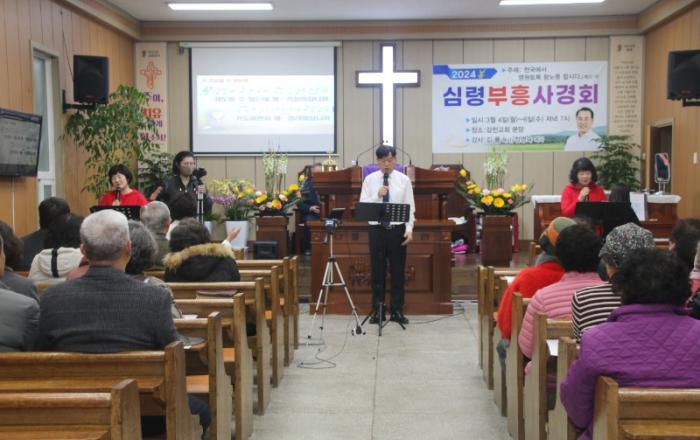 [Photo by 채석일 기자]예천감천교회(담임목사 김영욱)에서 지난4일(월) 저녁7시부터 '뷰티풀천국 쇼킹지옥' 저자 김 폴 목사와 사모 정영숙 목사를 초청 2024년 심령부흥성회가 열리고 있다.감천교회 본당에서 열리고 있는 부흥성회는 6일(수)저녁7시까지