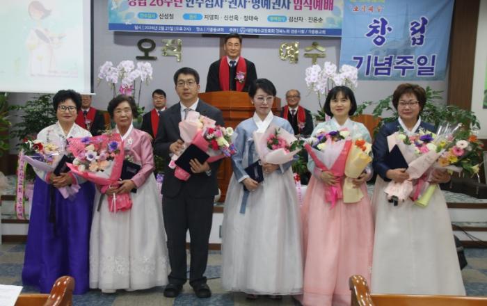 가흥동교회,창립26주년 기념, 믿음의 기둥 세우다…안수집사,권사,명예권사 임직식 거행