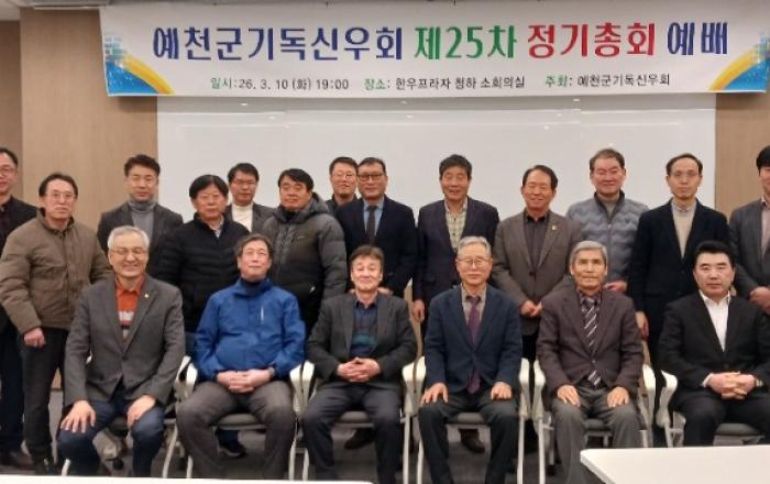[채석일 기자]예천군기독신우회(회장 황칠환 장로.예천교회)가 24일 저녁7시 기독신우회 황칠환 회장을 비롯한 20여명이 회원이 참석한 가운데 마전중앙교회(김태규 목사)에서 2026년도 2월 정기 월례회, 순회예배를 드렸다.이날 지역교회 순회예배로 열린 월례회는 신우회