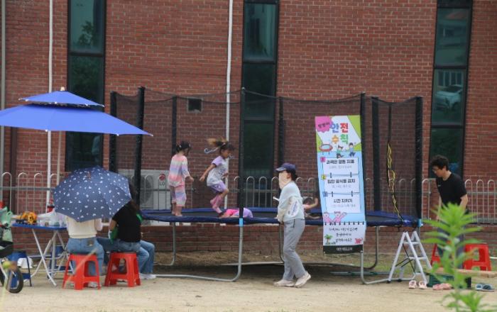 [Photo by 채석일]예천제일교회(김운수 목사) 주차장에 아이들이 더위도 아랑곳 방방이 놀이터 즐거운 시간을 보내고 있다.29일(토) 오전 11시,예천제일교회 에서는 주차장에 방방이 놀이터를 설치해 이웃 아이들이 자유롭게 놀이를 할 수 있도록 하고있어 주민들의 칭찬