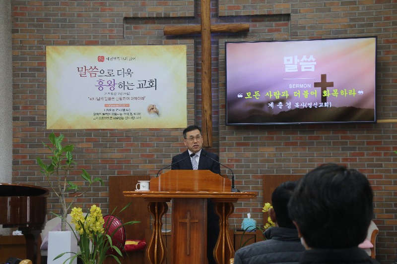 이날 계춘경 강사 목사는 로마서 12장 18절 성경말씀을 가지고 “모든 사람과 더불어 화목하라”라는 제목으로 ‘가화만사성(家和萬事成)’을 ‘교화만사성(敎和萬事成)’으로 비유하며 성도들 가정이 화합하고 교회가 화합하면 사업과 생업에 천배의 축복이 일고 나아가서 교회의 부흥도 일만배의 부흥으로 이르는 기적이 일어날 것이다.“국가의 정치인들도 한마음 한뜻이 되어야 나라가 발전하듯이 우리 모든 성도들도 한마음 한뜻이 되어야 한다.”고 권면했다.