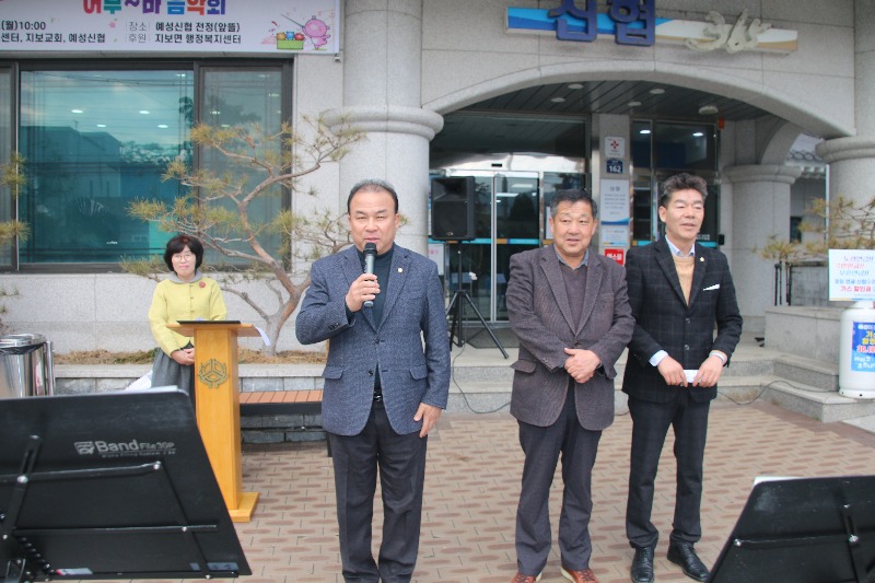 지난 26일 오전10시 예천군 지보면 예성신협 앞 마당에선 김학동 예천군수,최병욱 군의장,이형식 경북도의원등 내빈과 지역민 250여명이 참석한 가운데 ‘지역민 에너지 충전 , 어부~바 음악회’가 열렸다.