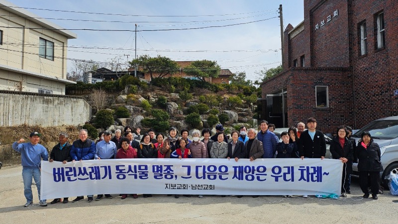 이번 활동은 지보교회 남선교회(회장 정영광 장로) 주관으로 이날 모든 예배를 마치고 지보교회 전 성도들이 참여해 ‘버린 쓰레기 동.식물 멸종, 그 다음 재앙은 우리 차례~’의 슬로건으로 오후 내내 하천 일대 쓰레기 줍기 및 청소를 실시했다.