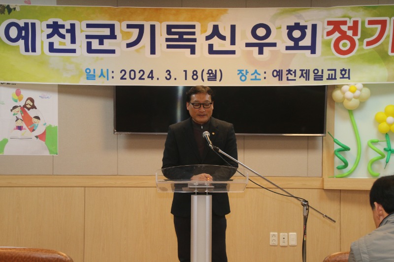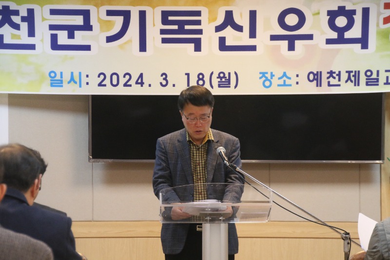 김운수 목사(예천제일교회)는 1부 예배 말씀에서 에베소서3장1절~7절의 말씀을 가지고 "오늘 예천군기독복음화의 기둥인 신우회 정기총회를 본 교회에서 열게되어 영광이다.2024년도 올 해에는 우리 신우회를 통해 하나님의 놀라운 역사가 일어날것임을 믿는다.예천을 변화시키고 더 새롭게 만드는 신우회원들을 보면 기드온의 삼백용사가 떠오른다.우리 예천을위해 ‘복음,은혜,사랑의 일꾼’이 되어주기를 기도한다.“라고했다.