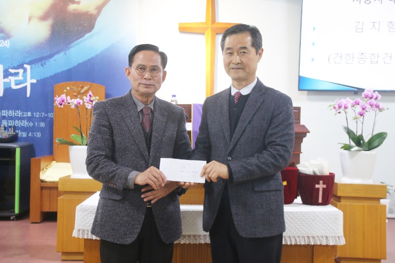 한편 예천군기독교연합회(회장 오성희 목사.금곡교회)는 이날 새성전 건축 착공 기금을 전달했다.