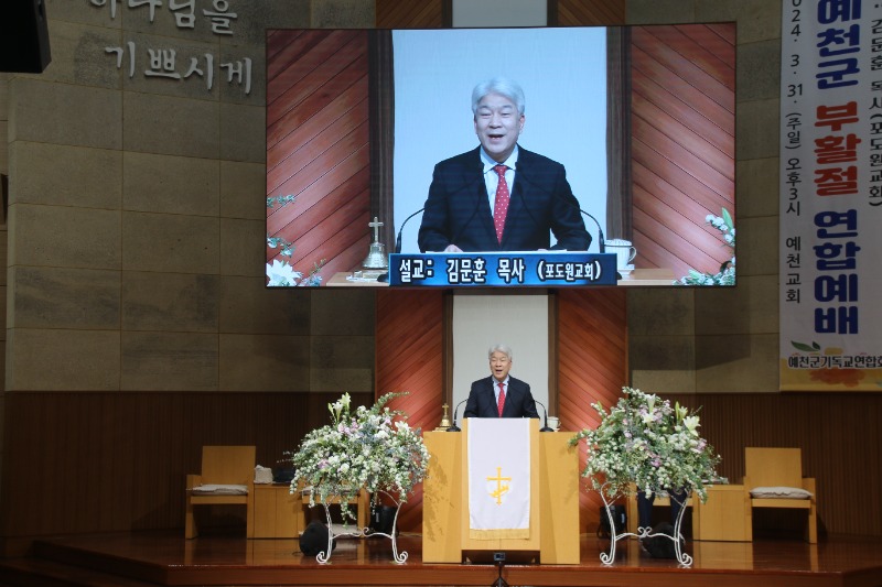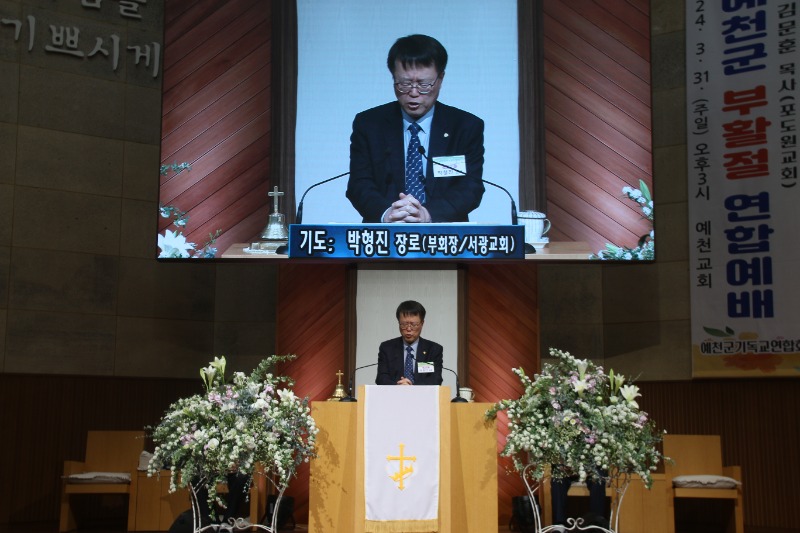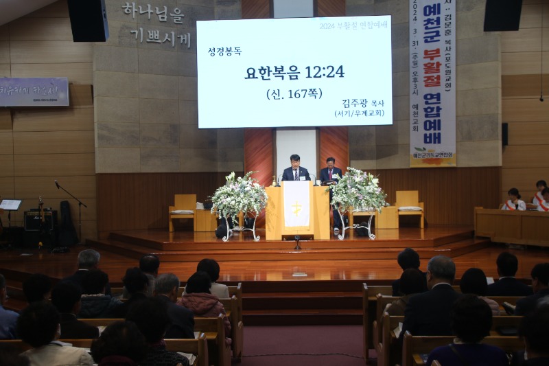 이날 부활절 연합예배에는 김학동 군수, 최병욱 군의장,신향순 군의원,김영수 예천교회 목사를 비롯한 관내 목사와 장로, 평신도 등이 참석하여 예수부활의 뜻을 되새기며 초청 강사의 설교를 청취했다.