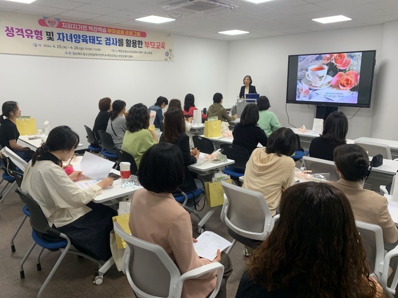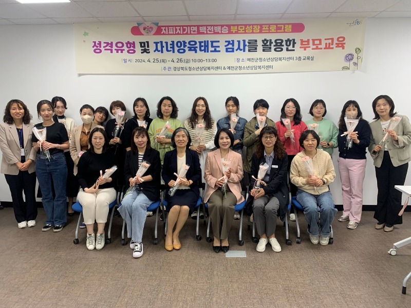 예천군청소년상담복지센터(소장 김현자)는 4월 25일, 26일 양일간 예천군청소년상담복지센터에서 청소년 자녀를 양육하는 부모를 대상으로 MBTI 성격유형검사와 자녀 양육 태도 검사를 통한 부모 교육을 실시했다.