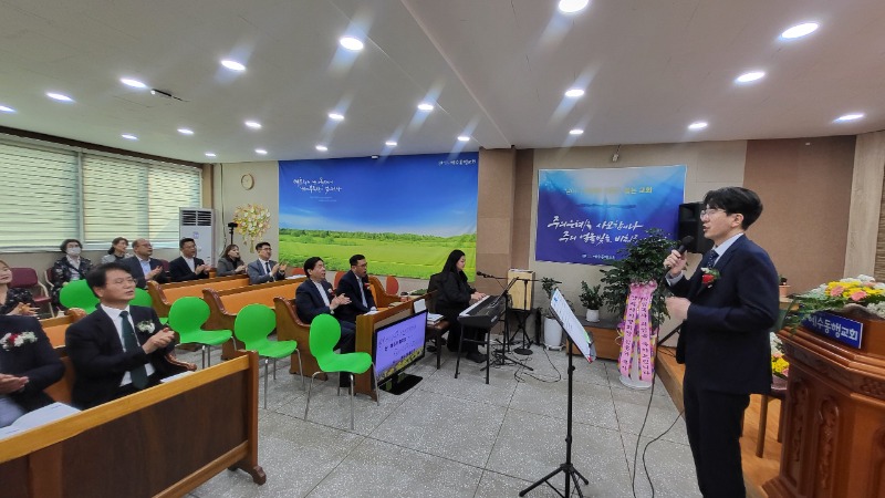 이어진 3부 ‘권면과축하’의 시간에서는 계춘경 목사(영신교회)의 권면,구미인평교회를 담임하고 있는 채수호 목사의 축사,기념품 및 꽃다발 증정,조재균 목사 취임사,예수동행교회어린이찬양단의 축하찬양과 조재균 취임목사의 축도로 취임예배를 마쳤다.