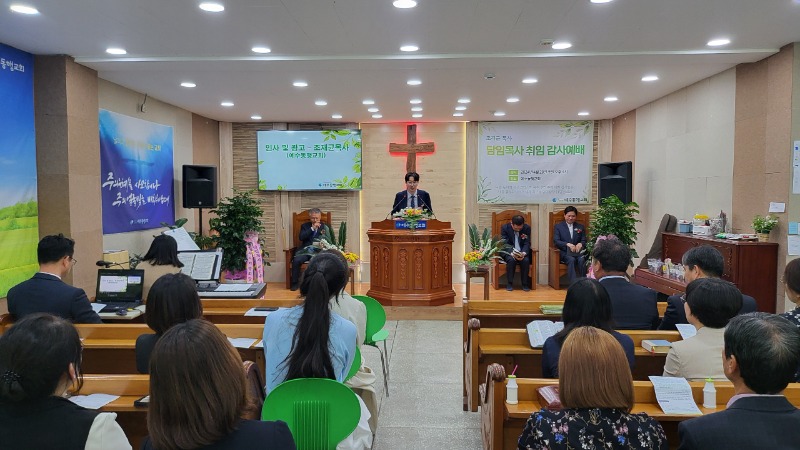 [채석일 기자]기독교대한성결교회 예수동행교회(담임목사 조재균)는 28일(일) 오후4시 예수동행교회 예배당에서 성결교단 경북서지방회장 김윤규목사(동부교회),송태영 장로(경북서지방회 부회장), 지역 목회자 및 성도들 100여명이 참석한 가운데 초대 조재균 담임목사 취임감사예배를 드렸다.