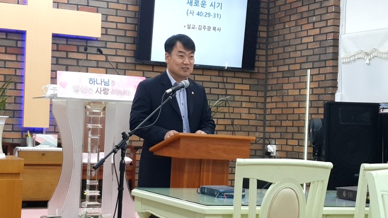 이날 김주광 목사(우계교회)는 성경 이사야40장29절~31절 말씀을 기초로 .“새로운 시기 ”라는 주제의 말씀을 전했다.