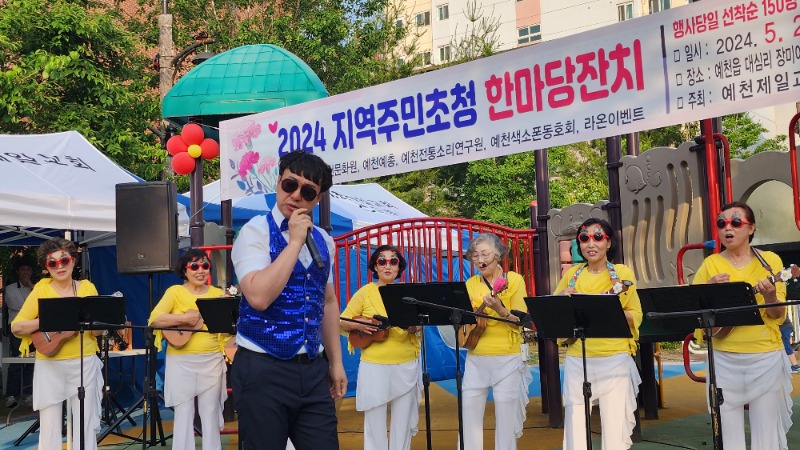연이은 2부 행사는 안태진 MC의 맛깔나는 사회로 지역 가수들의 신명나는 가요와 찬양,전통소리 민요팀의 ‘민요한자락’,명실공히 예천을 대표하는 하와이안 기타 ‘우쿨렐레’ 공연팀의 연주,예천색소폰 동호회의 더위를 식혀주는 시원한 연주,등 다채로운 공연으로 함께한 주민들의 어깨를 들썩이게 했다.