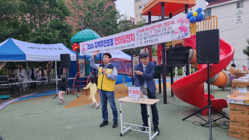 [채석일 기자]예천제일교회(담임목사 김운수)는 25일 오후5시,교회 옆 대심 제3어린이공원(예천읍 대심리 소재)에서 ‘2024‘지역주민초청 한마당잔치’를 성황리에 개최했다.
