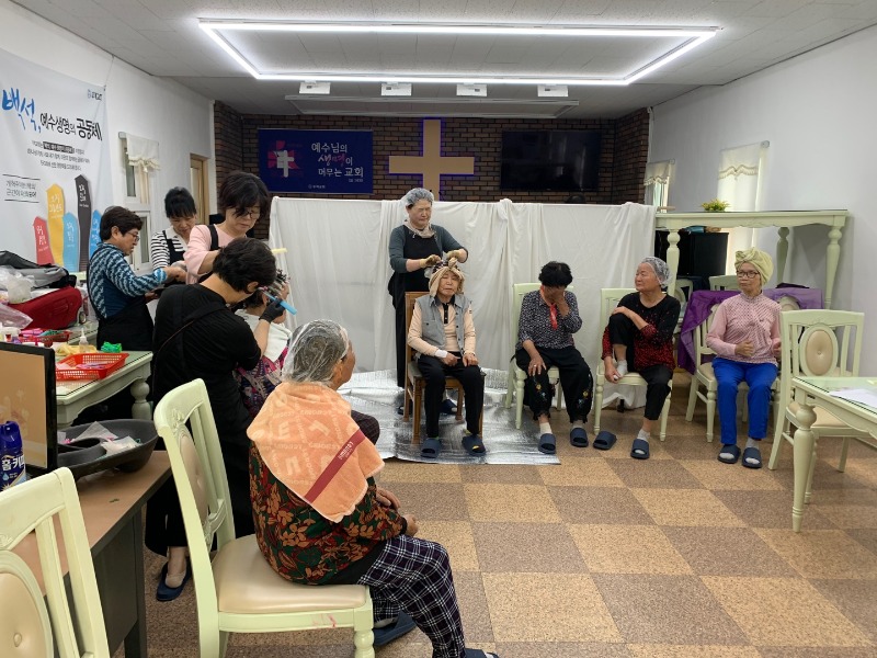 이미용봉사는 거동인 불편한 어르신들은 봉사회원들이 직접 방문해 교회로 직접 모셔와 머리커트, 염색 등 머리 손질과 간식도 같이 전달하며 건강과 안부도 같이 확인했으며,의료봉사는 건강검진과 함께 한방침술등을 실시했다.