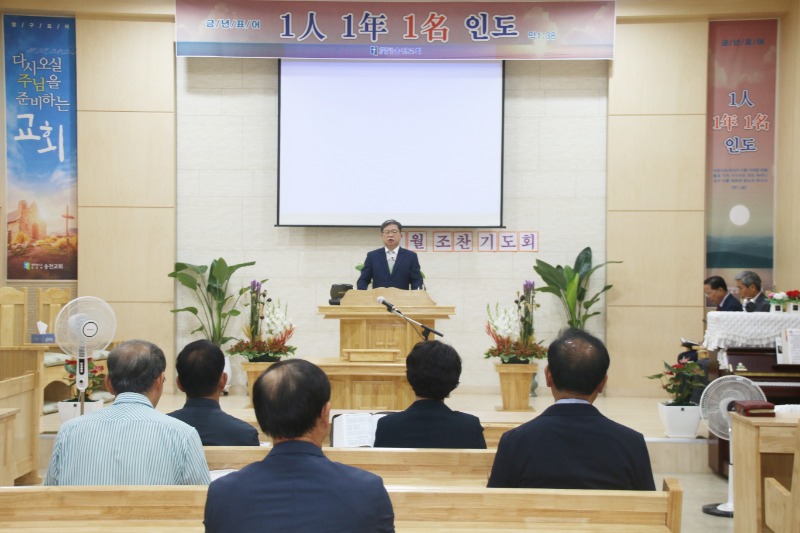 [채석일 기자] 6일 오전 6시30분 예천군 유천면 송전교회(담임목사 김병우) 에서 예천군기독교연합회(회장 오성희 목사.용문금곡교회) 주관으로 2024년 7월 조찬 기도회가 열렸다.