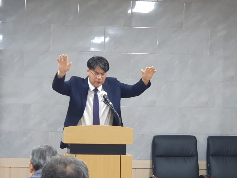 김상진 회장(예천제일교회)1부 예배에 이어 2부 월례회에서는 김상진 회장(예천제일교회 장로)의 사회로 부서기 최성열 장로(예천제일교회)의 회원점명에 이은 이헌각 집사의 회계 및 사업보고(총무)와함께 신 안건 토의 시간을 가졌으며 월례회 후 간담회겸 소통의 시간을 나눴다.