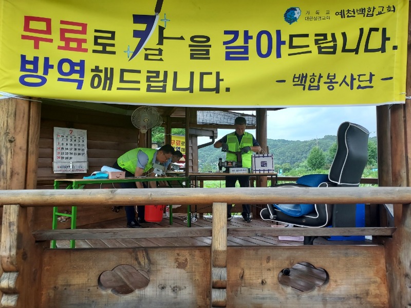 이번 칼갈이 봉사는 예천백합교회가 지역사회를 위한 의미 있는 활동이 무엇인지 고민하다 칼갈이/방역 봉사단(백합봉사단)을 만들어 그 첫 발걸음으로 시작됐다. 동네 어르신들이 무딘 칼과 가위, 낫등으로 불편을 호소할 뿐 아니라 사고 위험까지 크다는 판단에서다.