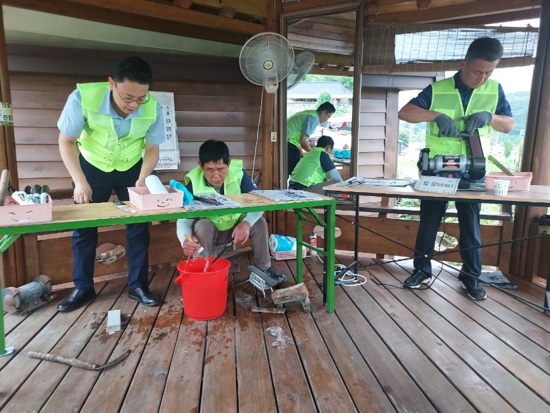 [채석일 기자]20일 예천읍 우계리 마을회관앞에는 여름 장마로 인해 굿은 날씨에도 동네 어르신들로 북적였다.이날 예천백합교회(김경환 목사.우계리 소재) 백합봉사단(단장 김경환)이 온다는 소식에 마을 주민들이 칼과 가위, 낫 꾸러미를 갖고 찾아온 것이다.