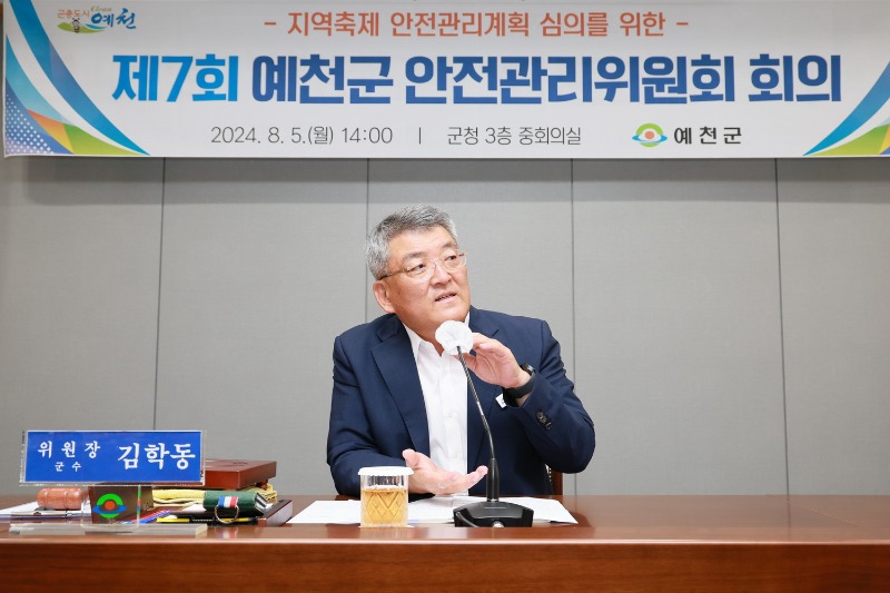 예천군(군수 김학동)은 5일 군청 중회의실에서 8월 15일부터 8월 18일까지 4일간 개최되는 2024년 곤충 축제의 안전관리계획 심의를 위한 ‘제7회 예천군 안전관리위원회’를 개최했다.