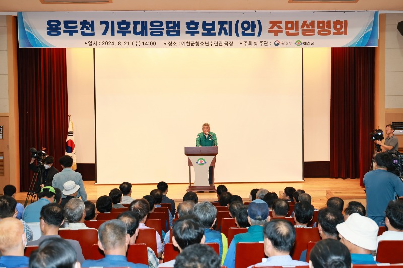 예천군과 환경부는 21일 오후2시 청소년수련관 극장에서 예천군민을 대상으로 ‘용두천 기후대응댐 후보지(안) 주민설명회’를 개최했다.