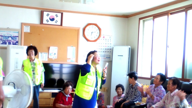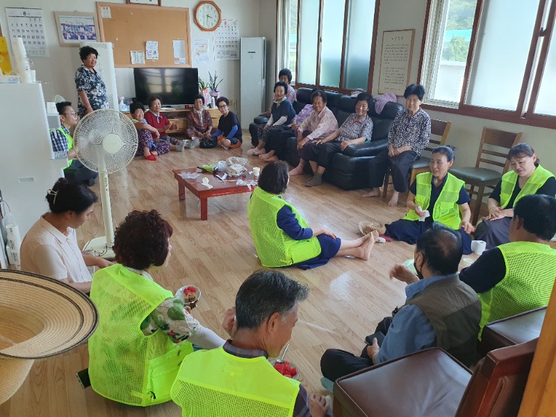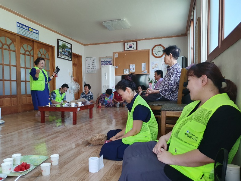 마을회관 안에서는 백합교회 성도들이 교회에서 준비해온 떡과 수박을 나누며예수님의 복음을 전하고 구원의 길로 안내하며 신명나는 가요 잔치와 함께 예수님 찬양 복음송 소리가 울려 퍼졌다.