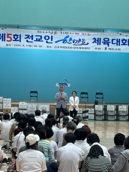 [채석일 기자]예천교회(김영수 목사)는 '전교인 한마음 체육대회'를 7일 오전9시30분부터 예천군 문화체육센터에서 김영수 목사를 비롯한 교인 500여명이 참석한 가운데 성대히 개최했다.