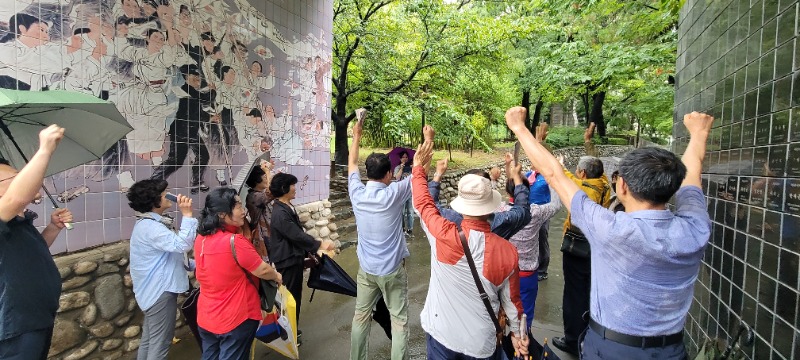 가을을 재촉하는 빗소리가 정겹게 들리는 가운데 신우회원들은 김상진 회장의 출발 기도를 시작으로 100여년 전 한국에 온 선교사들이 선교스테이션을 세웠던 그 때- 일제강점기,독립을 연원한 대구 시민들이 만세를 외치며 쏟아져 나왔던 90계단, 선교와 순교의 역사가 고스란히 남아있는 대구제일교회 와 의료선교박물관을 향해서 출발했다.