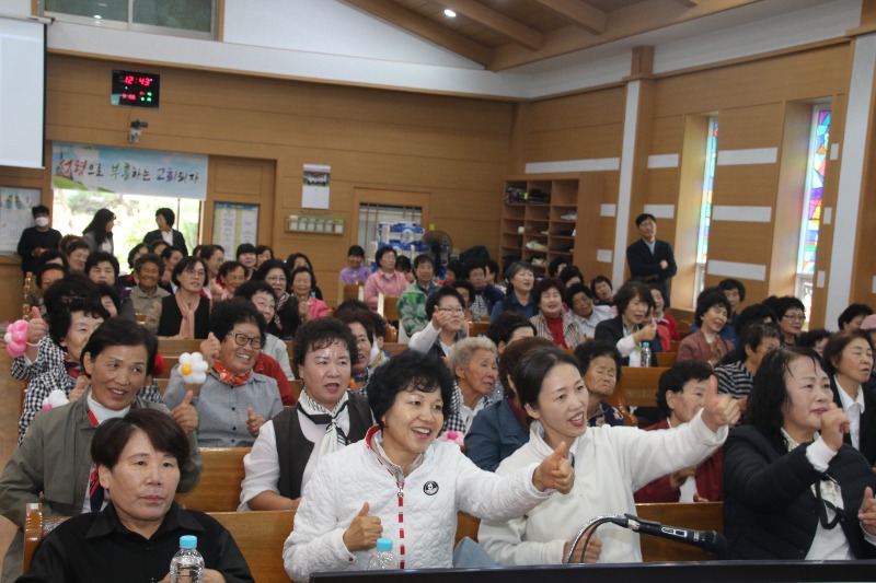 발표회 중간 경품 추첨을 통해 선물을 받은 주민 K모씨(지보면.여.66세)는 “무더운 여름이 지나고 가을이 성큼 다가와 추수를 앞두고 이렇게 교회에서 잔치를 열어주고 선물도 주니 정말 좋다.봄에도 한번 더 해주면 종은데....”라고 했다.