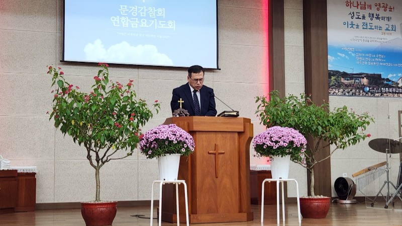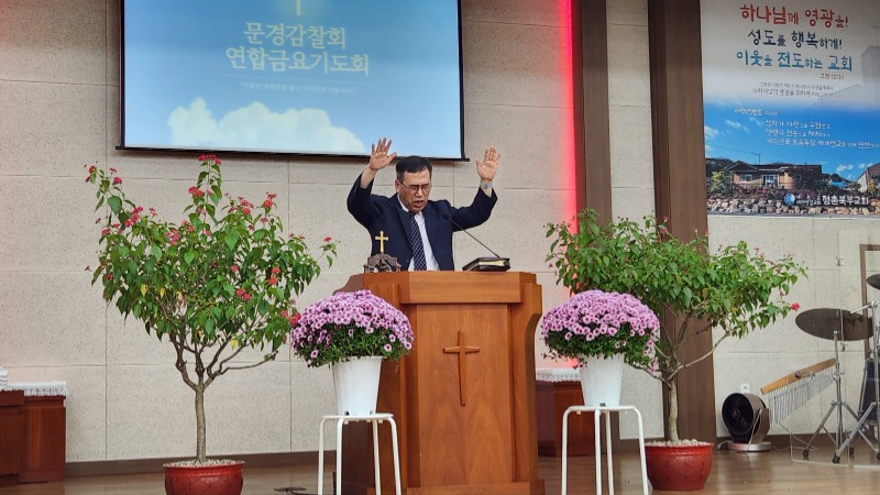 [채석일 기자]기독교대한성결교회 경북서지방회 문경감찰회(감찰장 김광진목사.가은은혜교회) 11개 교회가 18일 저녁 7시 30분,점촌북부교회(김홍일 목사)에서 2024년 10월 ‘연합금요기도회’를 열었다.